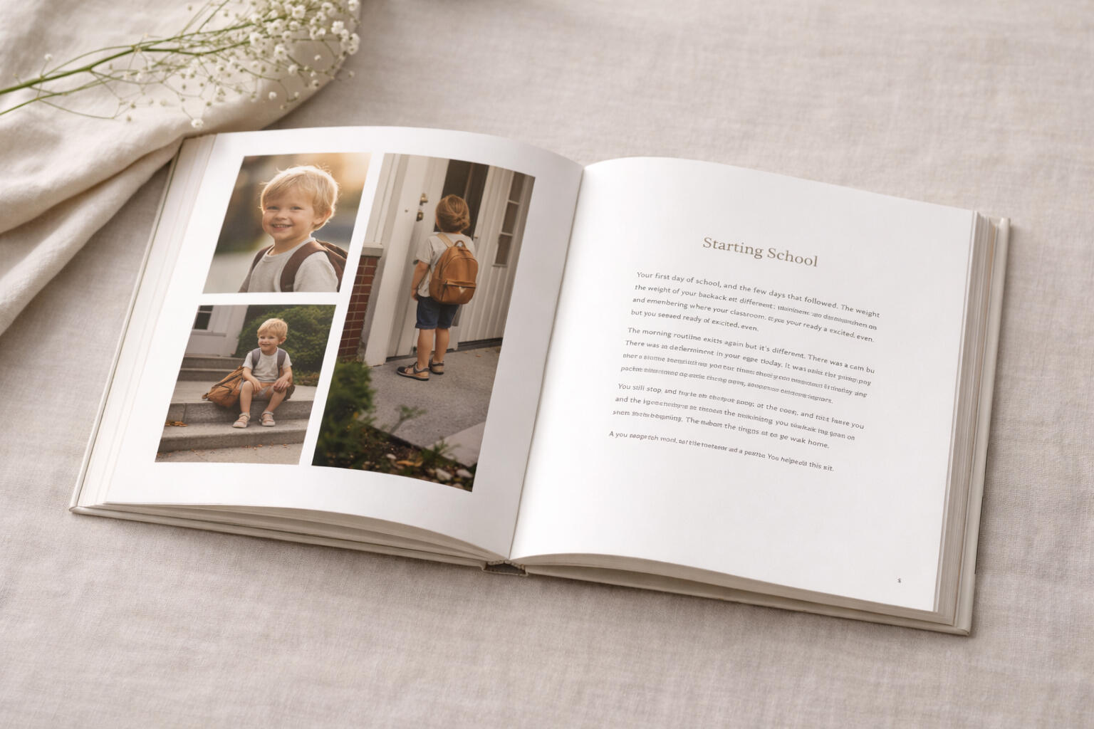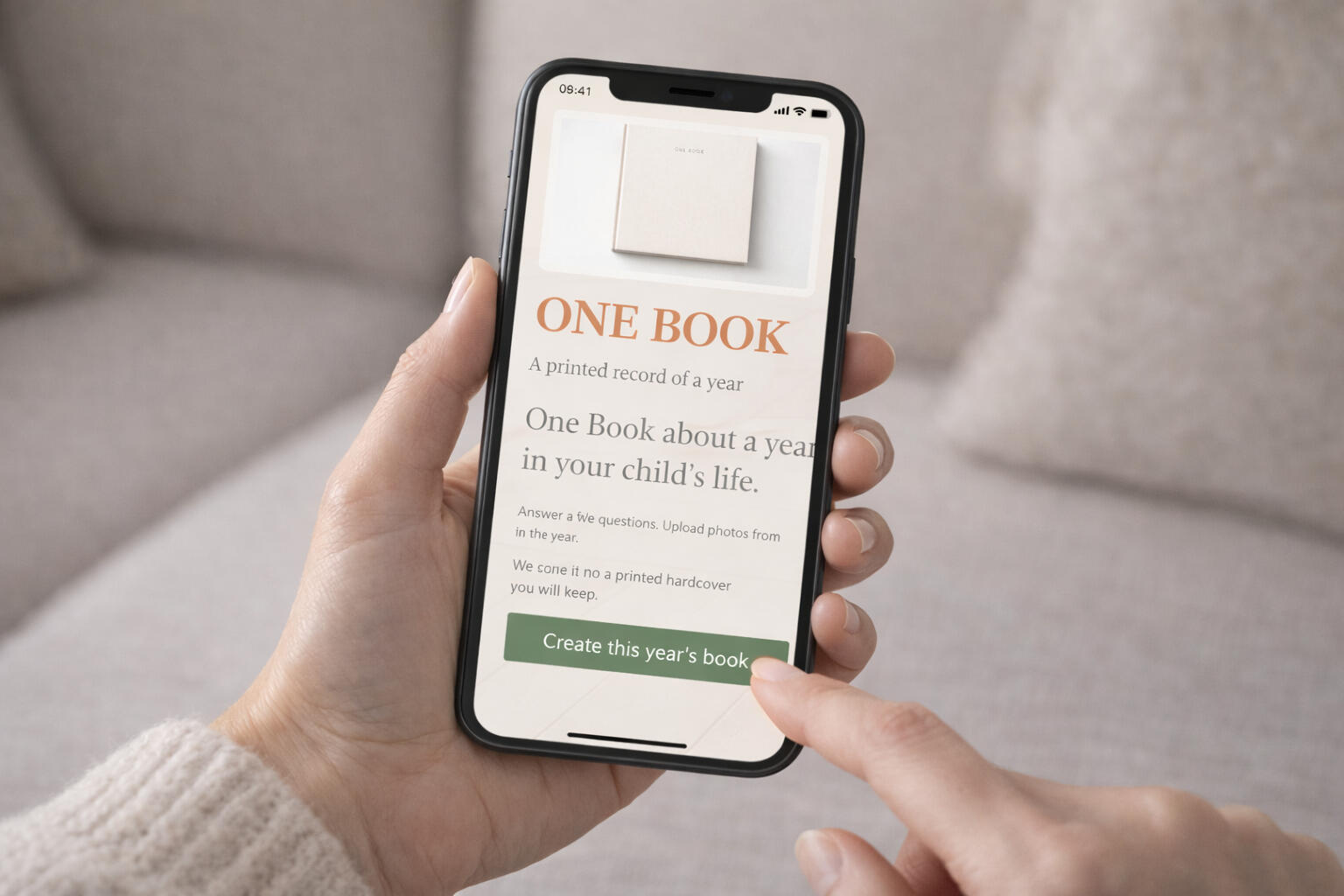 One Book turns a year in your child’s life into a printed hardcover.It isn’t a scrapbook.It isn’t a photo album.It isn’t something you design.It’s a calm, readable record of a year, written as a story and made to last.Most books document moments. This records a year.
